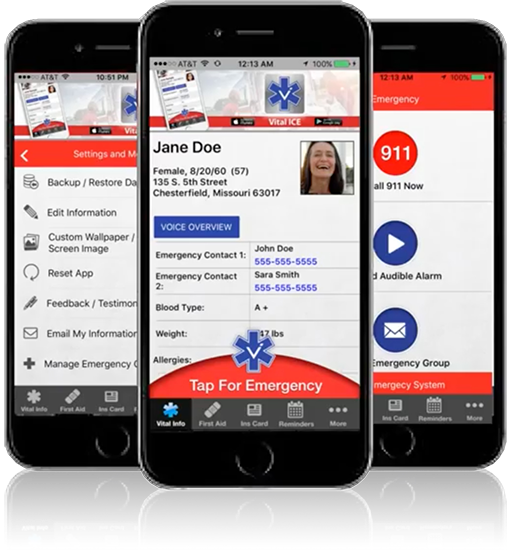 Vital ICE lets you list vital information on yourself and your dependents, such as blood type, allergies, medications, medical history, emergency contacts, and much more. Through the app, this information is readily available and easily accessed by EMS and other first responders if the user is unable to speak or is otherwise incapacitated.